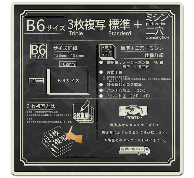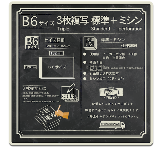 オリジナル伝票印刷サービス【【B6サイズ】3枚複写】