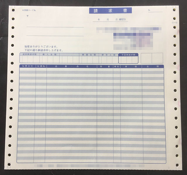 製品仕様 業種 OA機器販売店 用途 請求書 仕様 規格外サイズ(241x228mm)