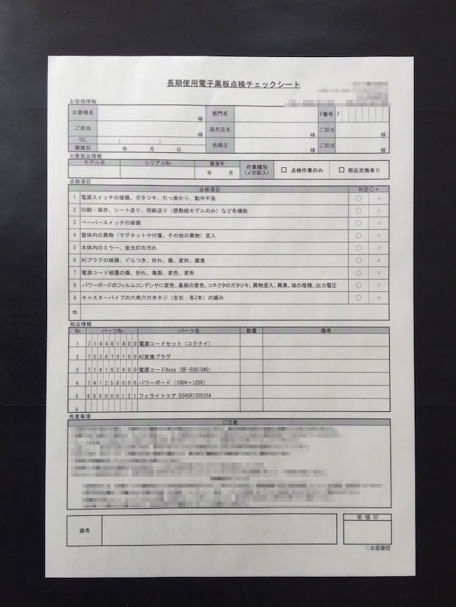 - 東京都のオフィス家具販売業P社様から頂いた【チェックリスト】の納品実績。