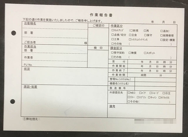神奈川県の電気修理業D社様より頂いた【作業報告書】の納品実績です。