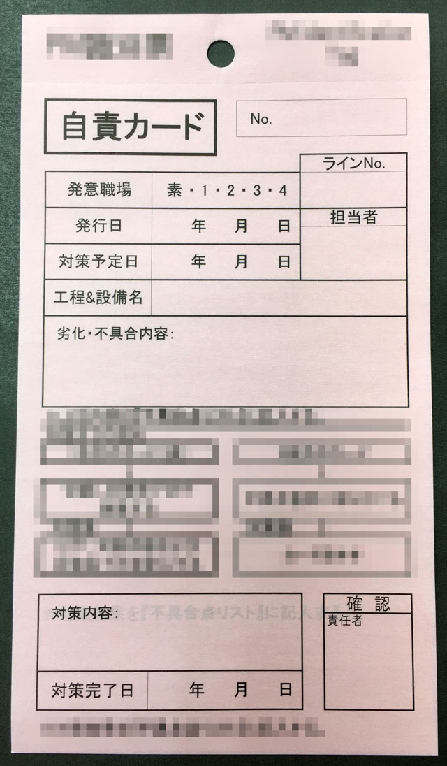 広島県のピストン開発・製造・販売K様から頂いた【自責カード】の納品実績です。