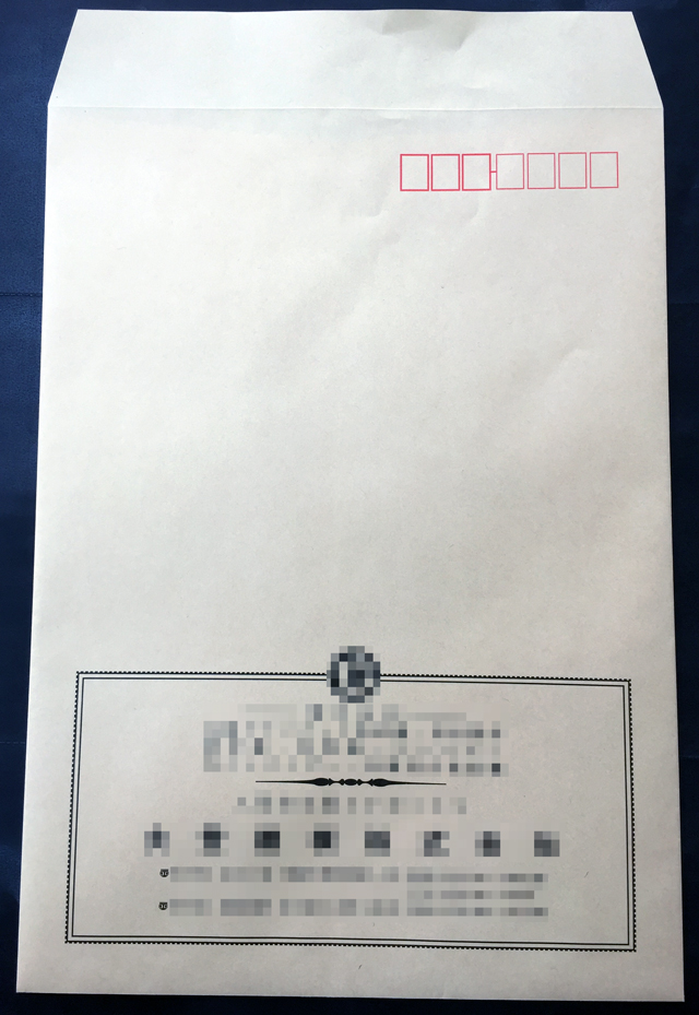 ご郵送頂きました、現在ご使用されている封筒を基に、校正を制作させて頂きました。
