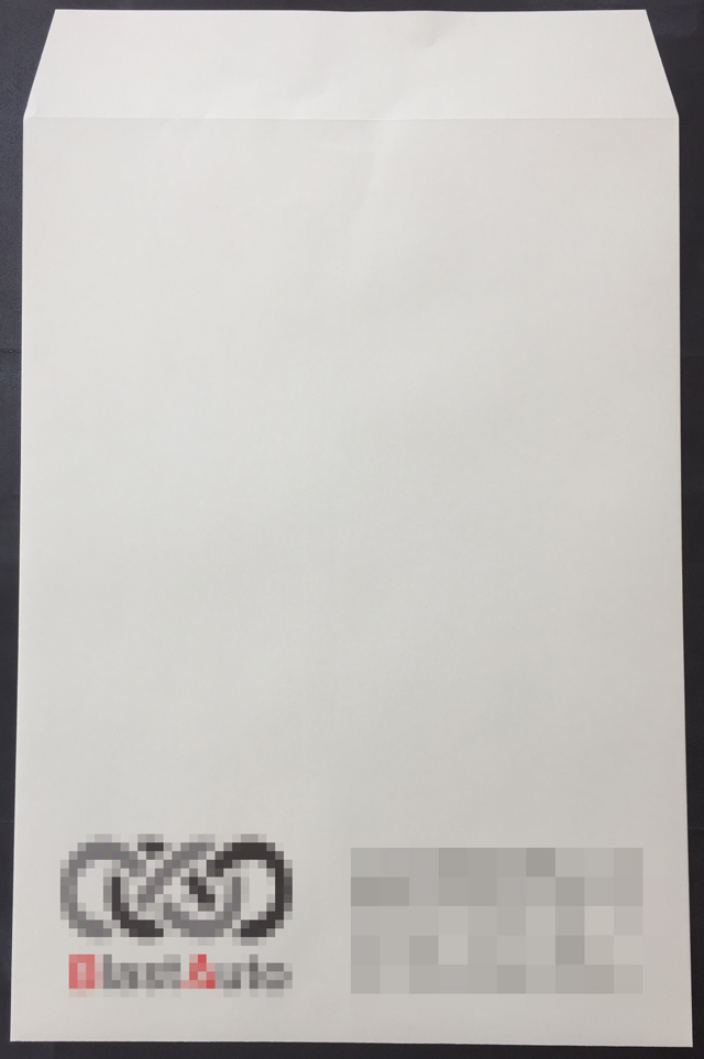 - 千葉県の中古車買取・販売B様より頂いた【角2封筒】の納品実績。