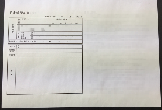 東京都のエステティック業R様より頂いた【月定額契約書】の納品実績です。
