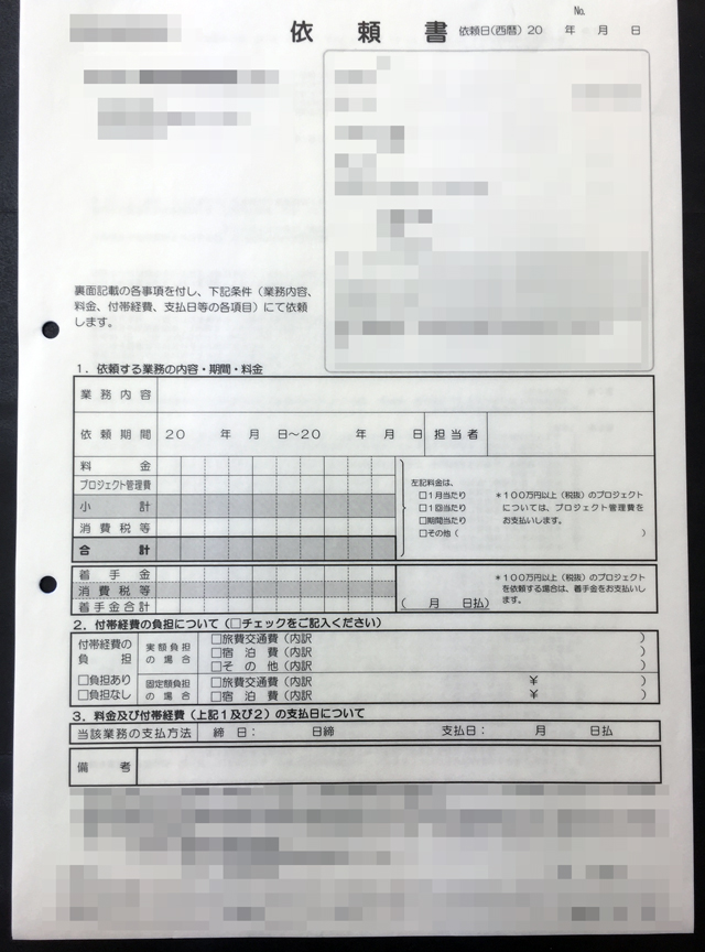 東京都のコンサルティング業C様から頂いた【依頼書】の納品実績です。