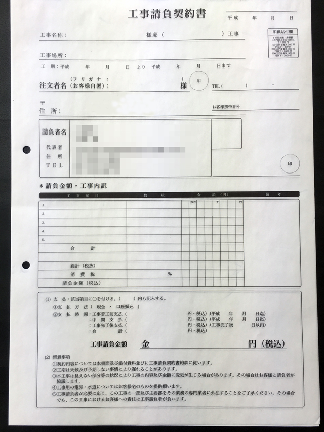 - 岐阜県の塗装業S様より頂いた【工事請負契約書】の納品実績。