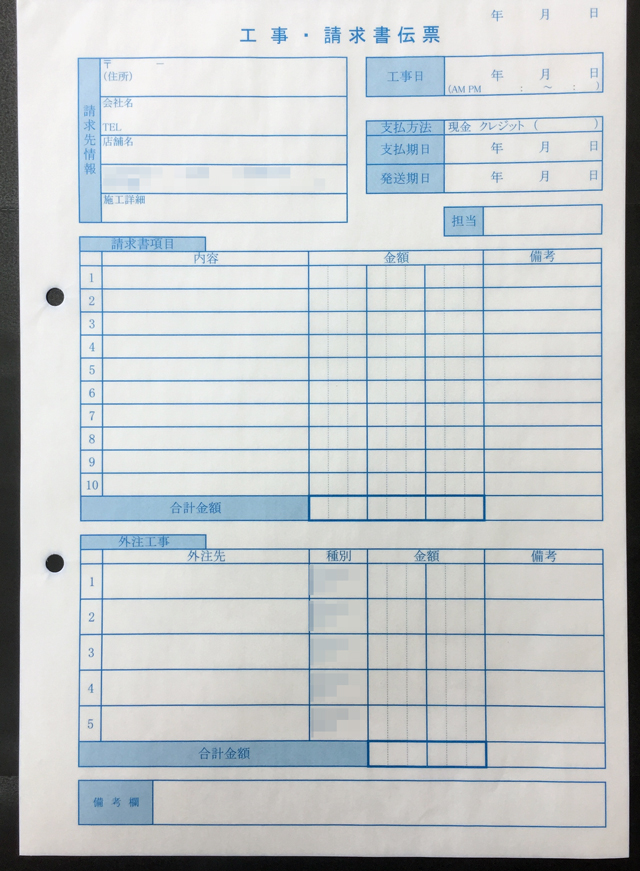 用途 工事・請求書伝票