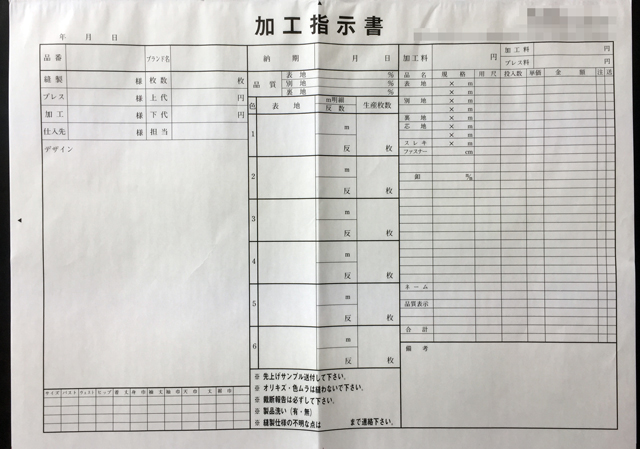東京都の繊維縫製業D様からのご注文。【加工指示書】の納品実績です。