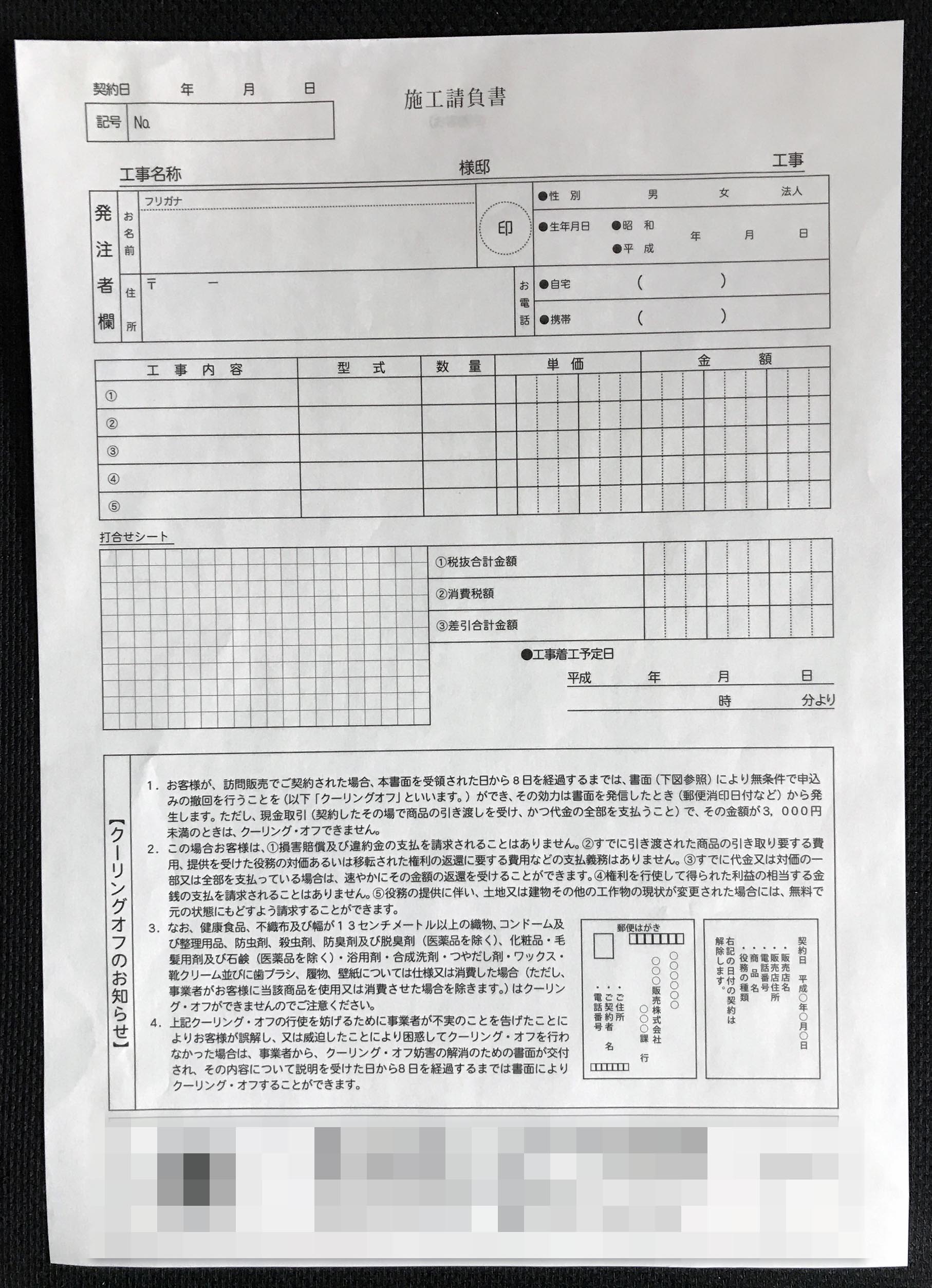 - 兵庫県のリフォーム業E様から頂いた【施工請負書】の納品実績。