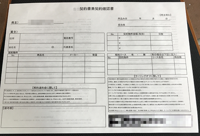 - 千葉県の通信コンサルティングU様から頂いた【契約書兼契約確認書】の納品実績。