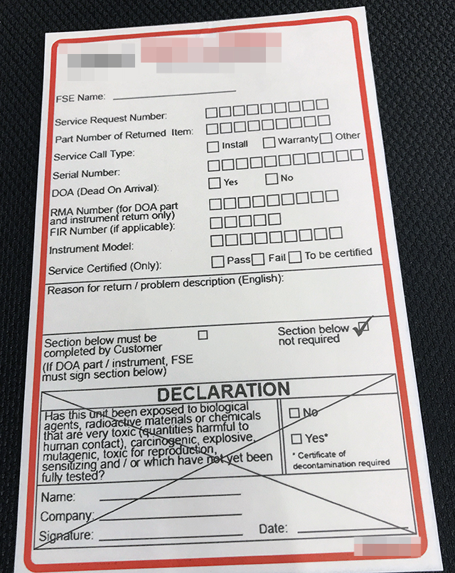 東京都の分析機器メーカーA社より頂いた【複写ラベル】の納品実績です。