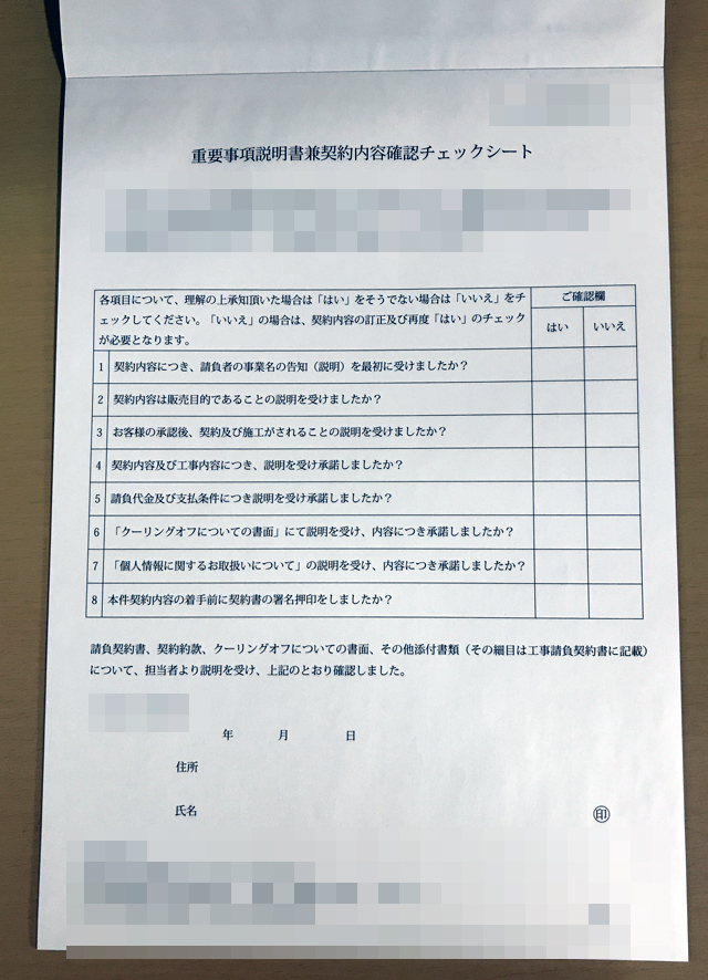 東京都のリフォーム業S様より頂いた【チェックシート】の納品実績です。