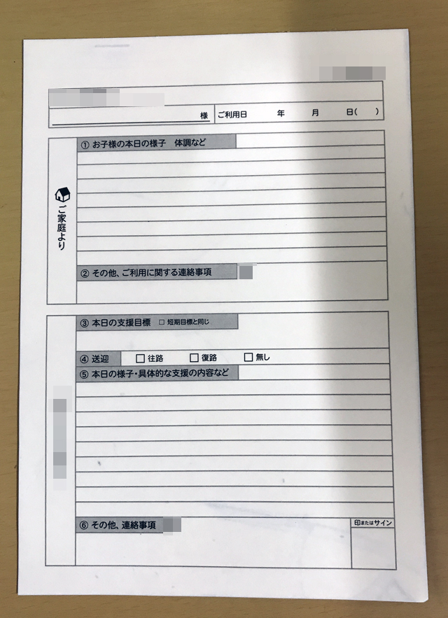 神奈川県の児童福祉施設M様より頂いた【連絡帳】の納品実績です。