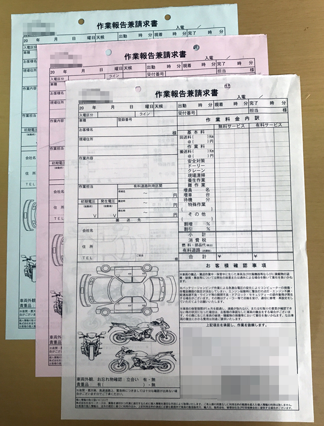 東京都の自動車整備業S様より頂いた【作業報告書】の納品実績です。