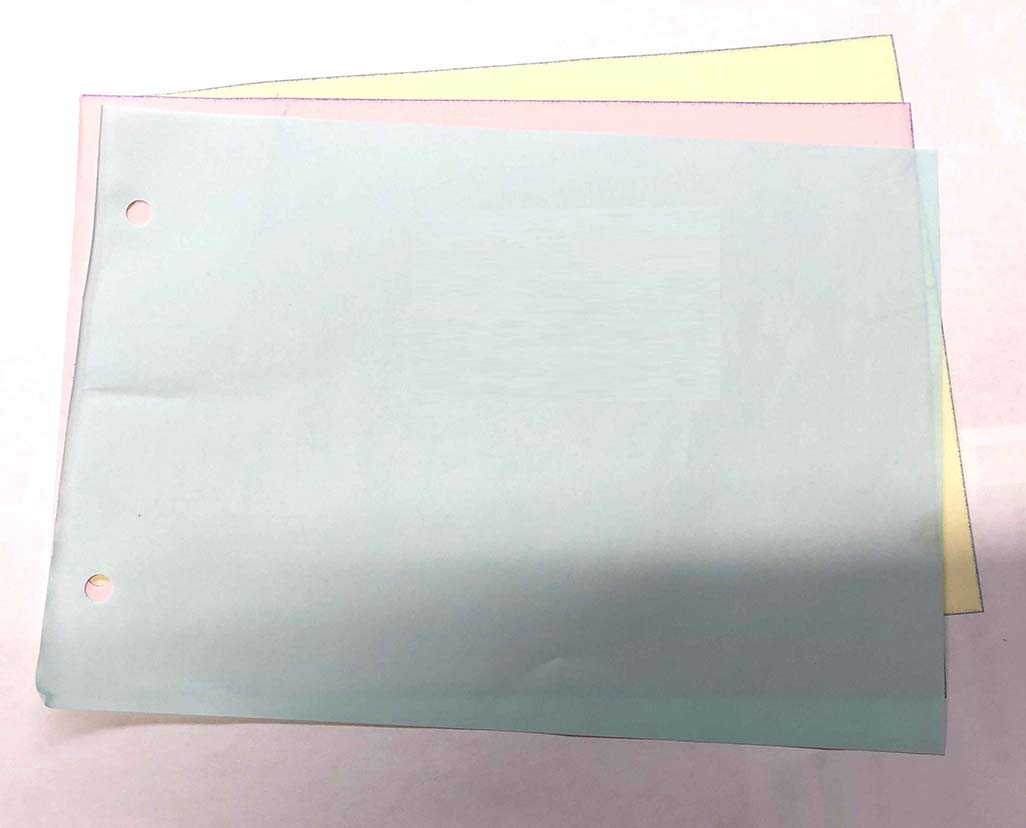 いつも御贔屓にして頂いていますお客様からお電話にて、複写メモのご注文頂きました。今回は印刷が無い色紙にパンチ穴をあけて3枚複写でスタッフ用のメモ用紙にしたいとのオーダーでした。のり付け位置とパンチ穴位置を校正をお作りしてご確認頂きました。校了頂き製本・納品とスムーズに進めさせて頂くことが出来ました。