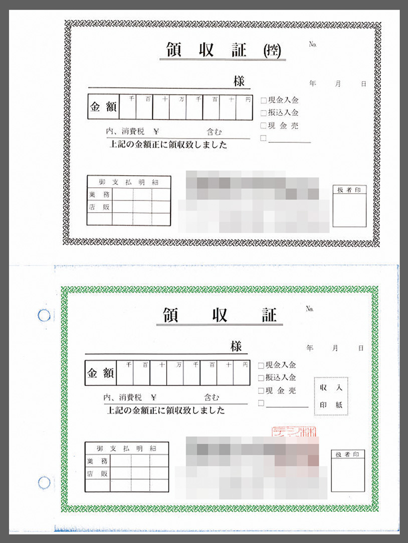 - 愛知県の美容用品卸売業で使用する複写式オリジナル領収証の納品実績