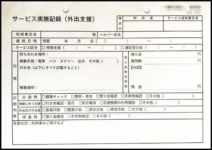 - 兵庫県の介護事業所A様より頂いた「サービス実施記録書」の納品実績